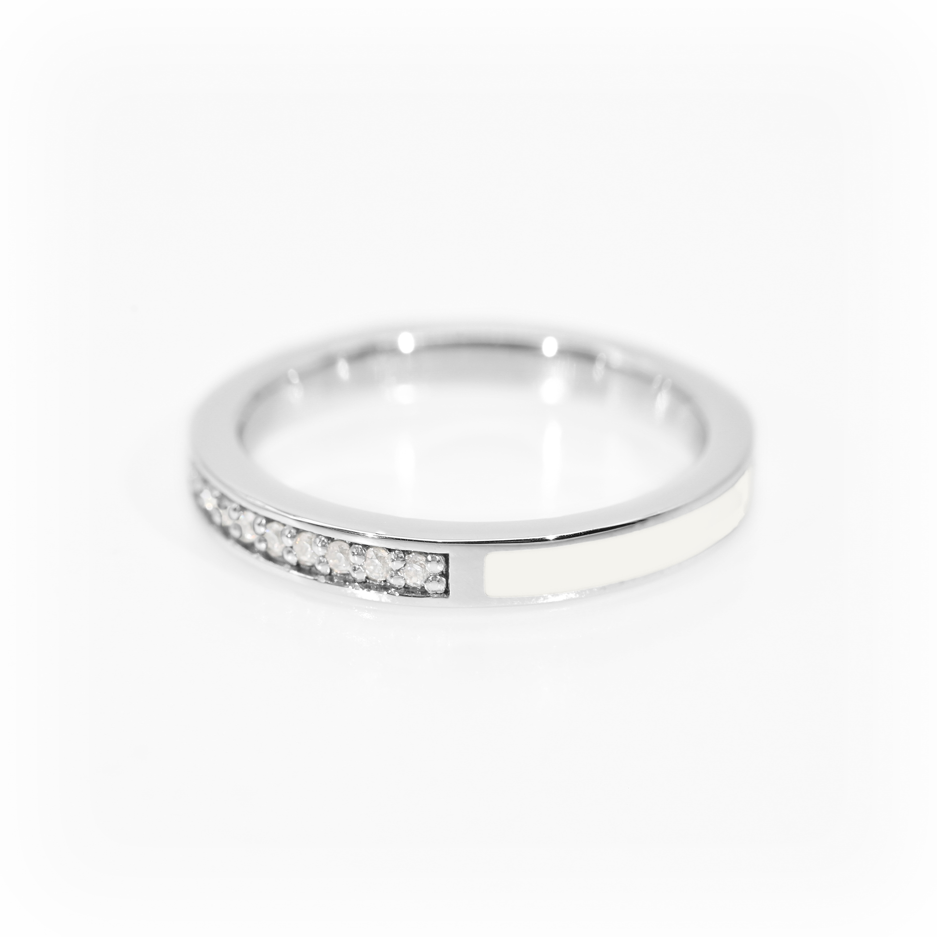 LUXE de DRESS co.10周年を祝う10石のダイヤモンドをサークルの半分に贅沢にちりばめ、半分はシドの楽曲と歌詞からインスパイアされた"色"を配しました。それぞれの色には歌詞の意味があり、全ての色にマオからのメッセージが込められています。