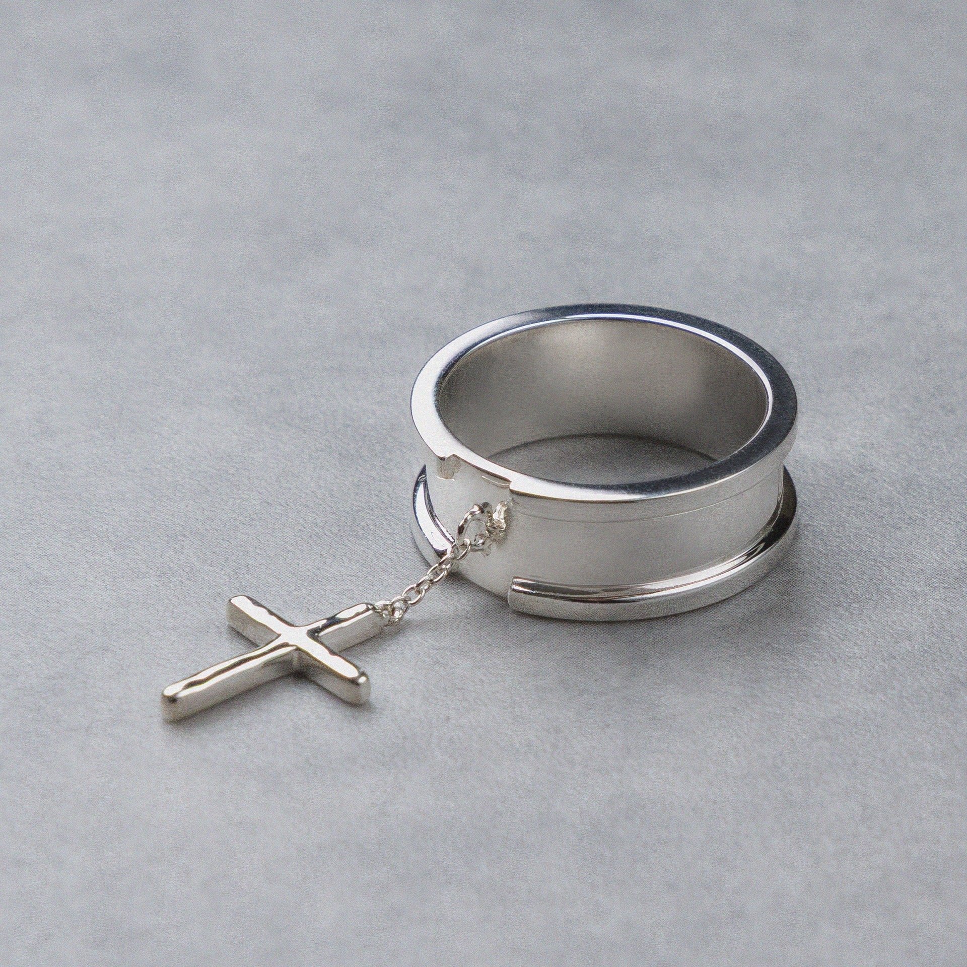 今回のアイテムはクロスをモチーフにした、シルバーリングとネックレスです。